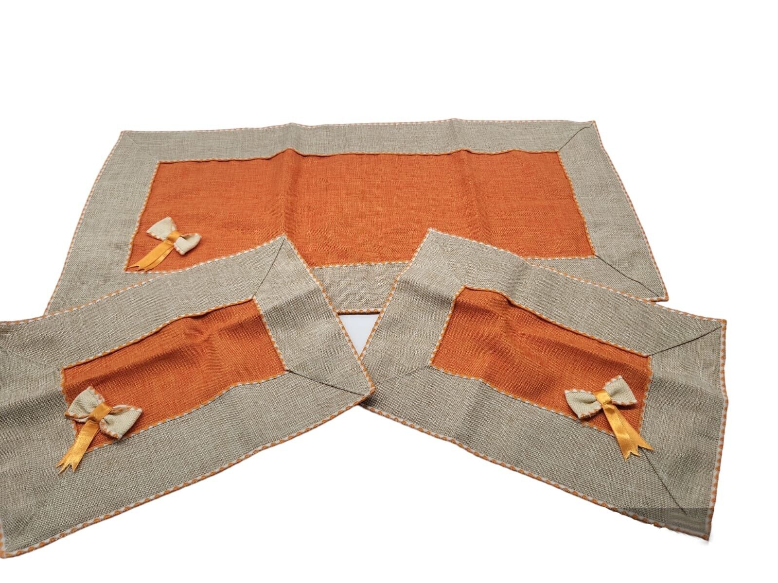 Ravviva la tua casa con l'eleganza senza tempo di questo esclusivo set di centrini in tessuto Juta, rifiniti con dettagli in smerlino. Realizzati con maestria artigianale italiana, questi centrini sono disponibili in una gamma di colori tra cui arancio, bordeaux, blu, beige, grigio, marrone, verde, senape.