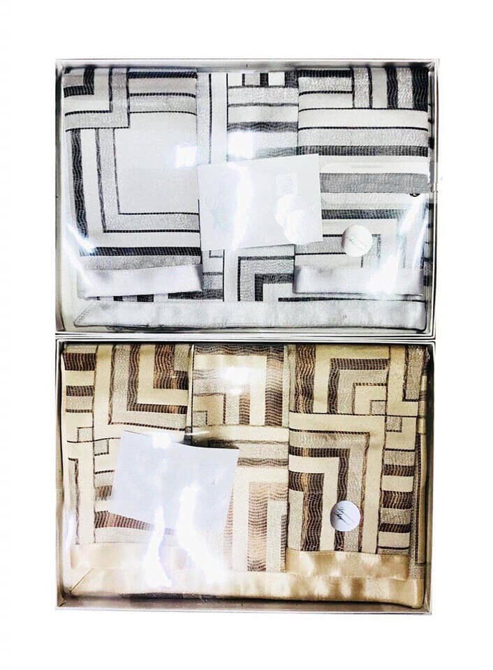 Tris di centrini composto da un centro grande 40x70cm e due centrini più piccoli 30x40cm. Realizzati con materiale di alta qualità. Questo Tris di centro ha una fantasia moderna per venire incontro alle esigenze, in particolare, dei più giovani.