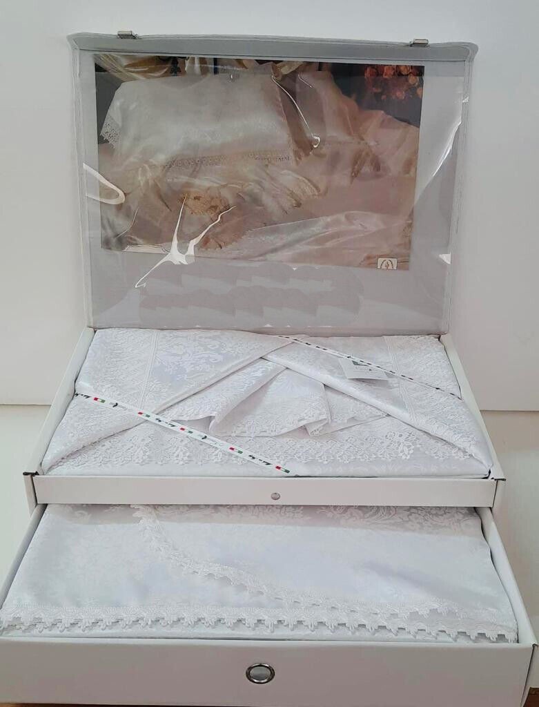 Completo Lenzuola Matrimoniale Raso Jacquard Comprensivo di Copriletto Stile