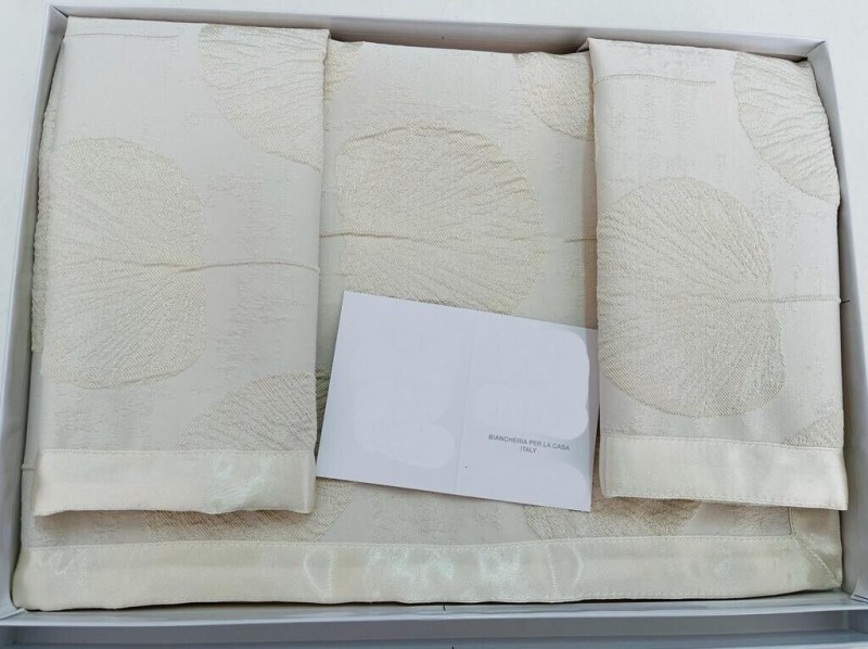 Esclusivi centrini, lavorazione artigianale produzione interamente italiana, in tinta unita con fondo floreale si abbinano sia ad un arredamento classico che moderno. Il set di centrini è perfetto in camera da letto, ma anche sui mobili, su una consolle o su un tavolo da salone.