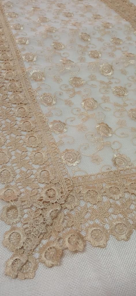 Misura: centrini 45x29 cm; runner 85x42 cm.