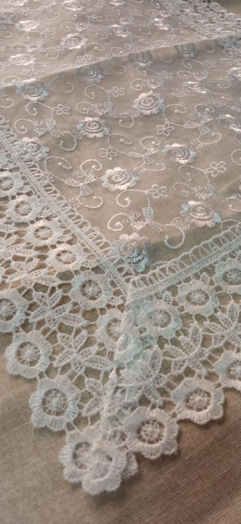 Misura: centrini 45x29 cm; runner 85x42 cm.