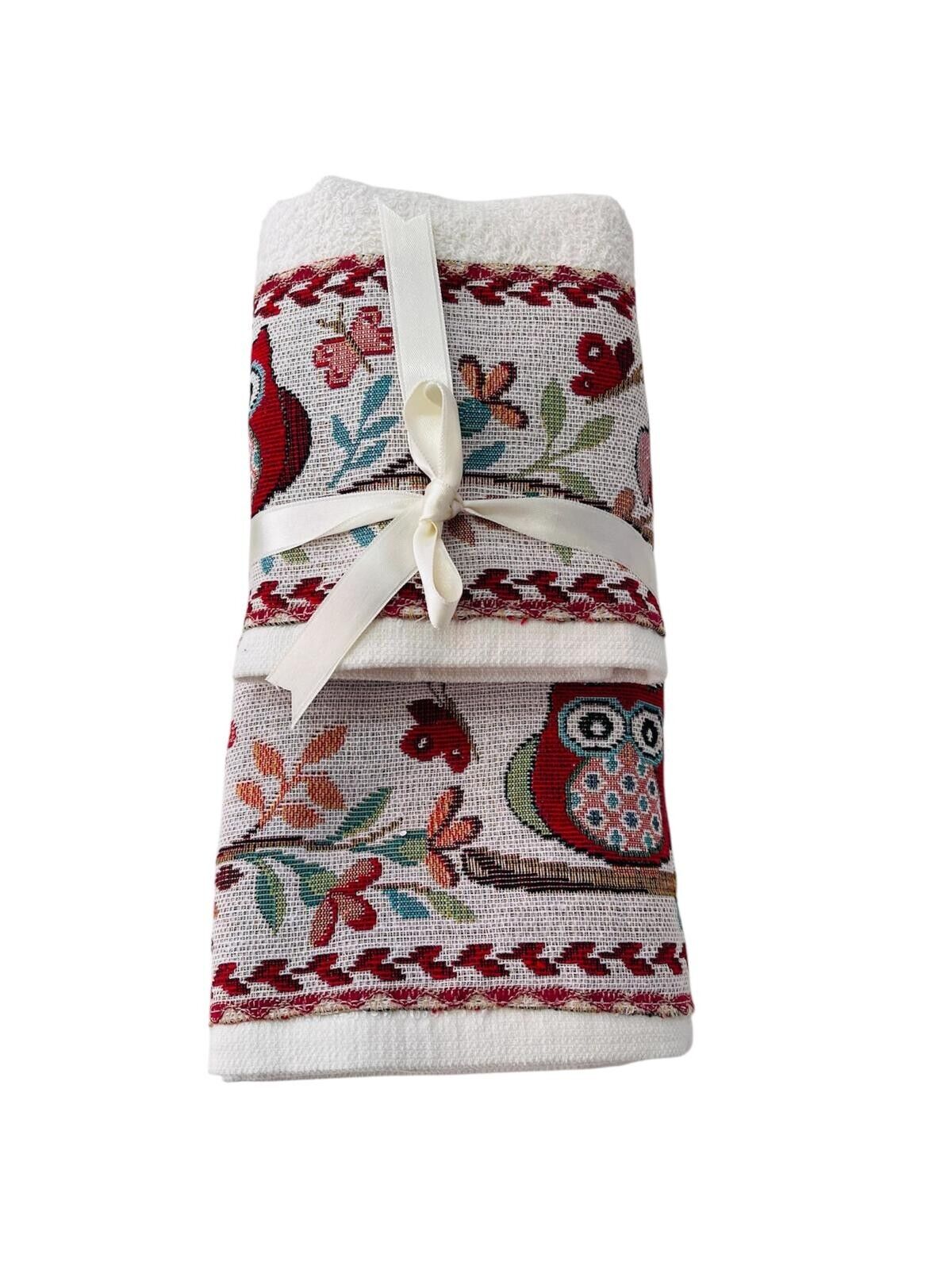 Set Asciugamani 2 Pezzi in Spugna di Cotone Idrofilo – Morbidi, Assorbenti e Decorati con Stampa Gufetti – Ideali per Casa, B&B, Hotel e Regalo