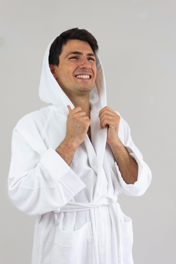 Scopri il comfort senza pari dell'accappatoio in spugna 100% puro cotone, perfetto per ogni occasione. Con una grammatura di 350 gsm, il nostro accappatoio è incredibilmente morbido e super assorbente, garantendo una sensazione di lusso ogni volta che lo indossi. Dotato di un ampio cappuccio, due tasche laterali e una cintura con passanti, è pratico e funzionale.