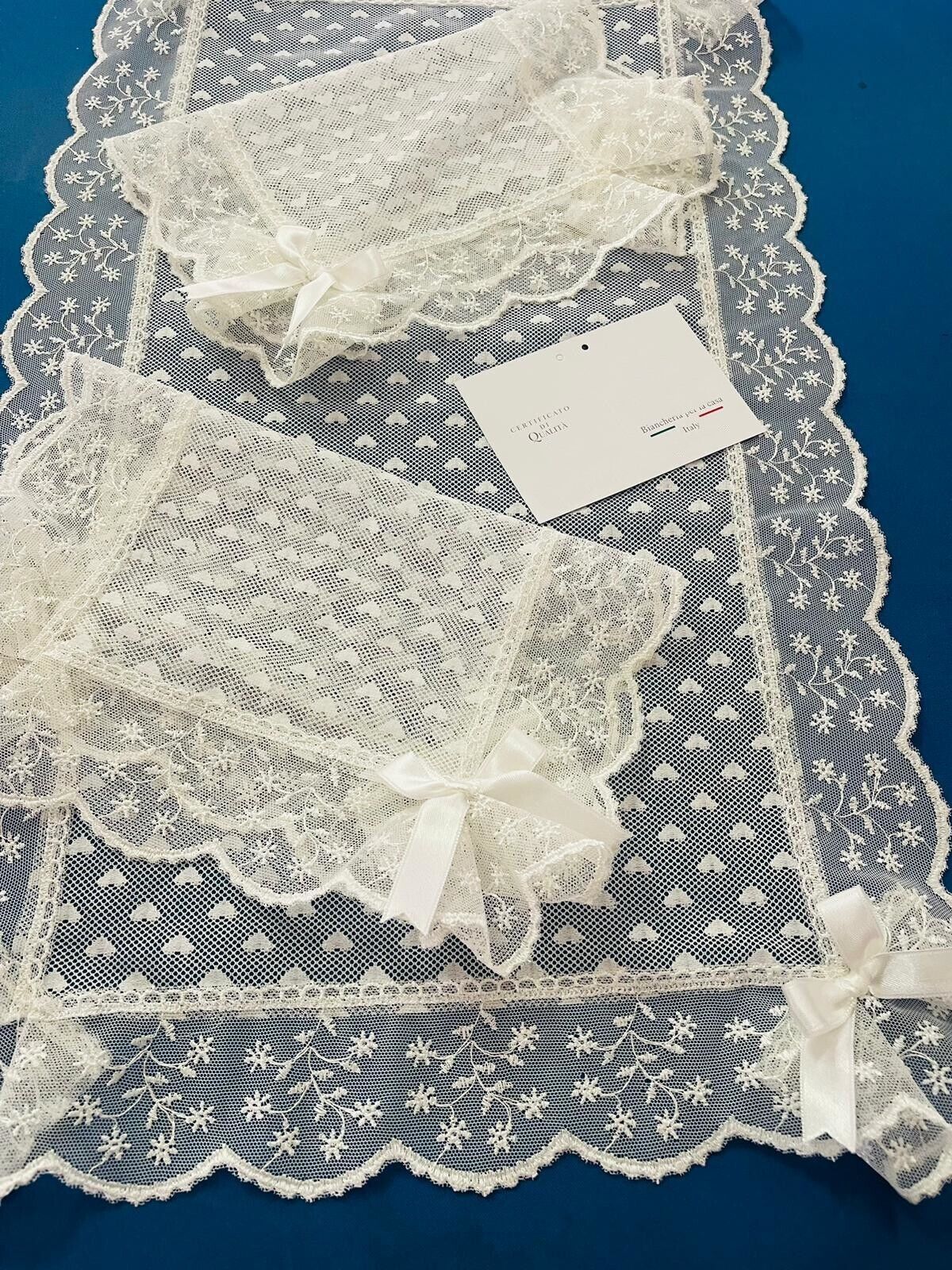 Elegante e ricercato set di centrini e runner, disponibili in diverse varianti per soddisfare ogni esigenza di stile e decorazione: