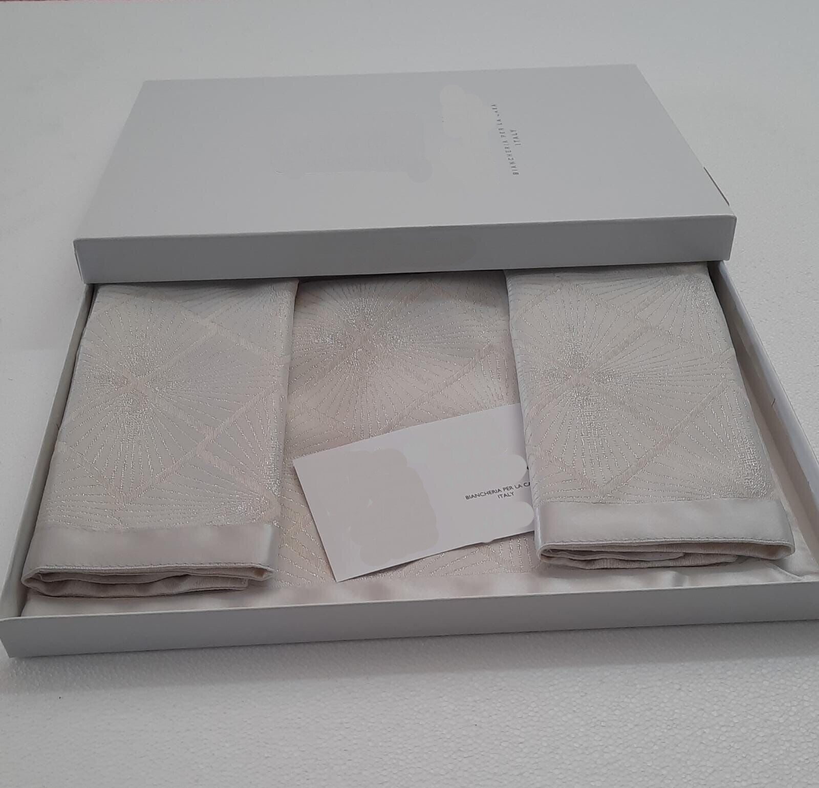 I centrini sono articoli da collezione essendo unici ed esclusivi eleganti e sofisticati, dalla lavorazione sartoriale, opera di mani esperte. Un complemento glamour e raffinato che veste e arricchisce con discreta eleganza vari ambienti per creare atmosfere lievi, impalpabili. Esclusivi centrini, lavorazione artigianale produzione interamente italiana, in tinta unita con bordo fantasia si abbinano sia ad un arredamento classico che moderno. Il set di centrini è perfetto in camera da letto ma anche sui mobili, su una consolle o su un tavolo da salone. Diverse lunghezze da adattare in qualsiasi arredamento dal tavolo da pranzo al tavolo da salotto, dalla camera da letto al salone. Ideali per qualsiasi tipo di arredamento.