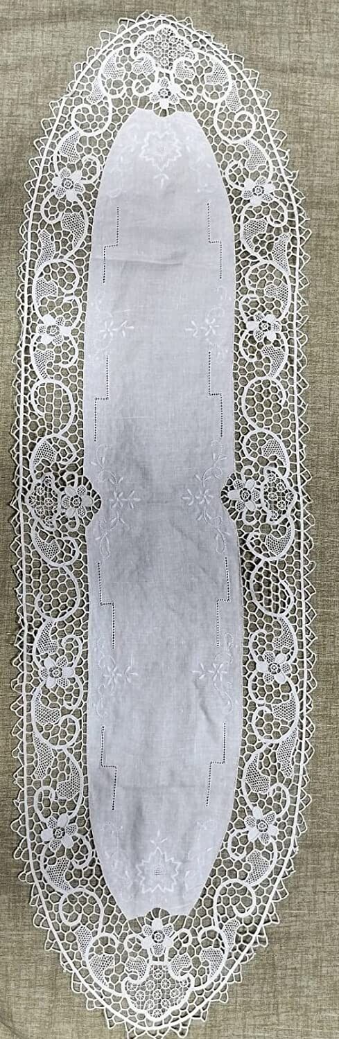Centro runner da tavolo, in due misure 40x130 e 40x180, in puro lino bianco ricamato in burano ti offre molteplici utilizzi nelle tue case e uffici, inclusi compiti di pulizia.