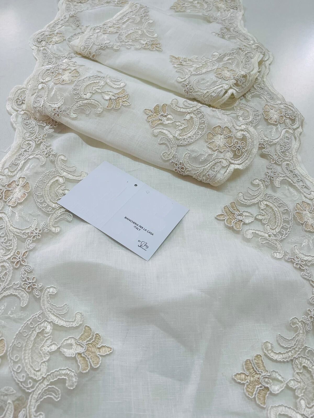 Centro Tavola 3 pezzi Puro Lino Panna Lavorato ai bordi Versatile Made in Italy