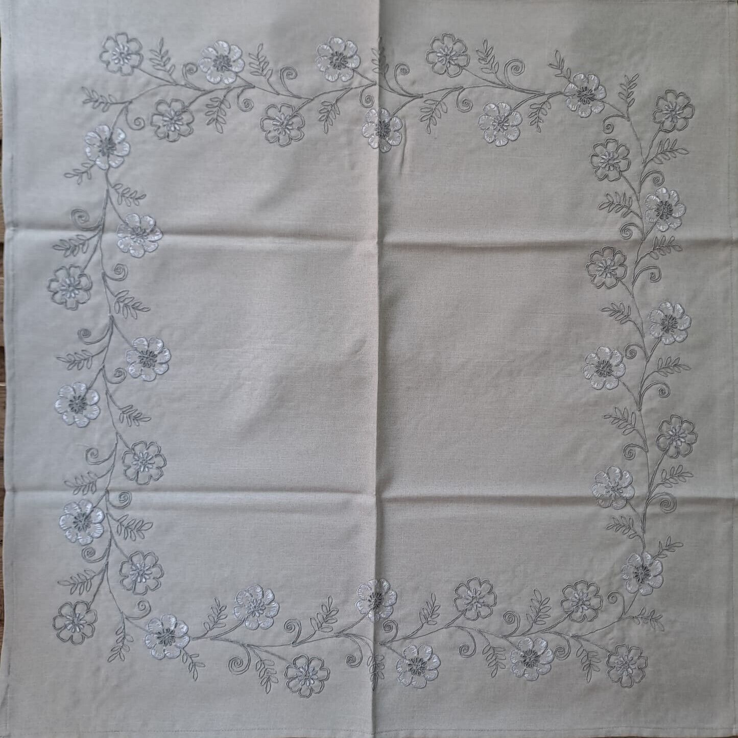 Centro tavola Quadrato Centrino Servizio Te Lino mis.36x36 Grigio Floreale