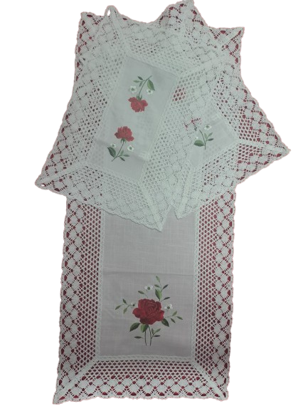 Aggiungi un tocco di eleganza e raffinatezza alla tua casa con il nostro set artigianale di centrini in misto lino con bordo ricamato. Questa offerta offre: un tris di centrini e/o centro quadrato e/o runner, tutti realizzati a mano in Italia.
