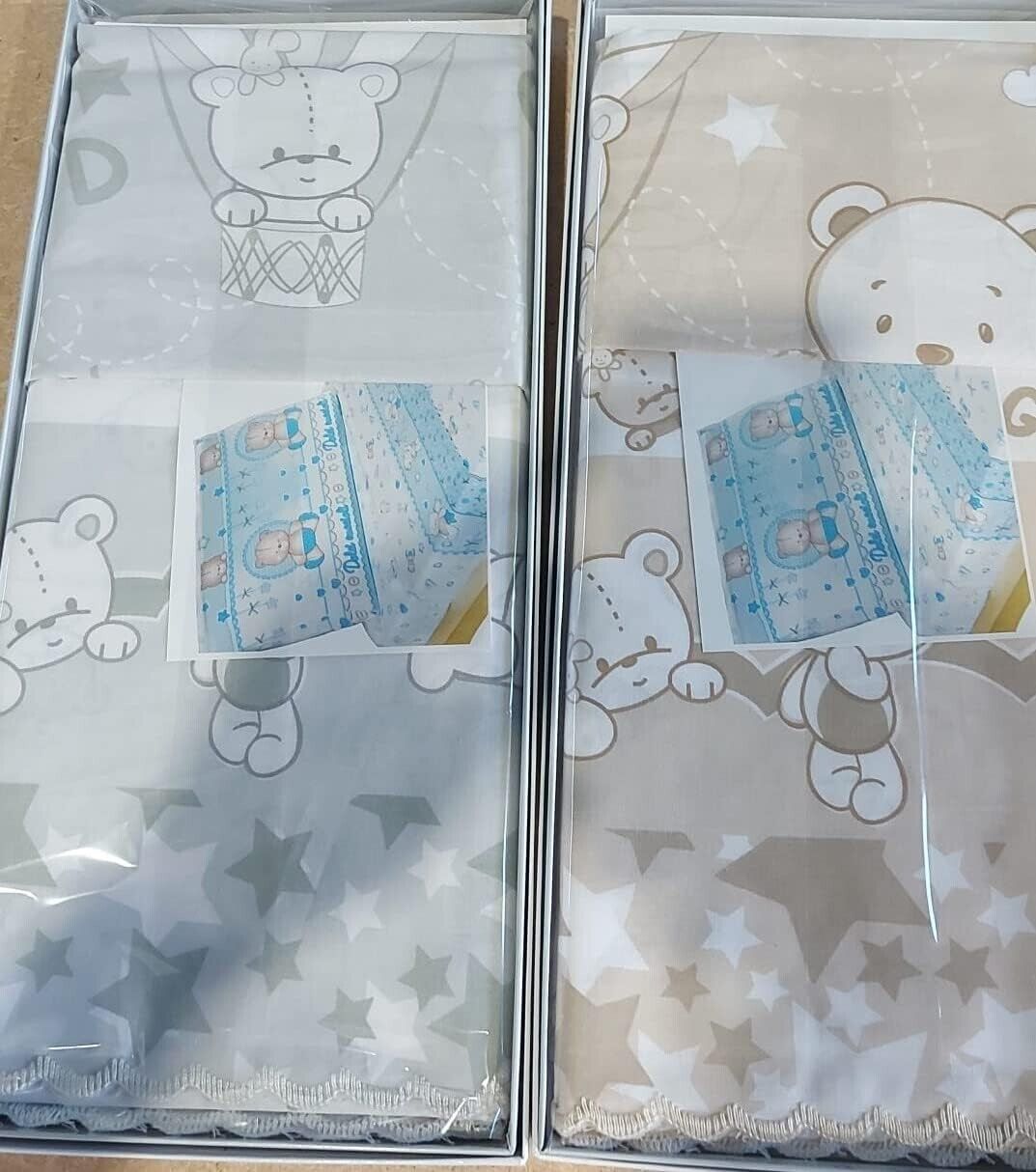 Dimensioni: Lenzuolo sopra 120x180 cm – Lenzuolo sotto con angoli 68x148 cm – Federa 43x60 cm. Questo meraviglioso set è ideale da tenere sempre in casa per i vostri neonati con una vasta scelta di colori.