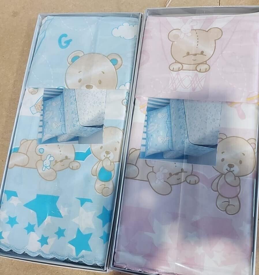 · Ideale per battesimi, nascite, compleanni, onomastici. Regala un completo biancheria bambino neonato sia per lui che per lei. Fantastiche fantasie a scelta ed in vari colori.