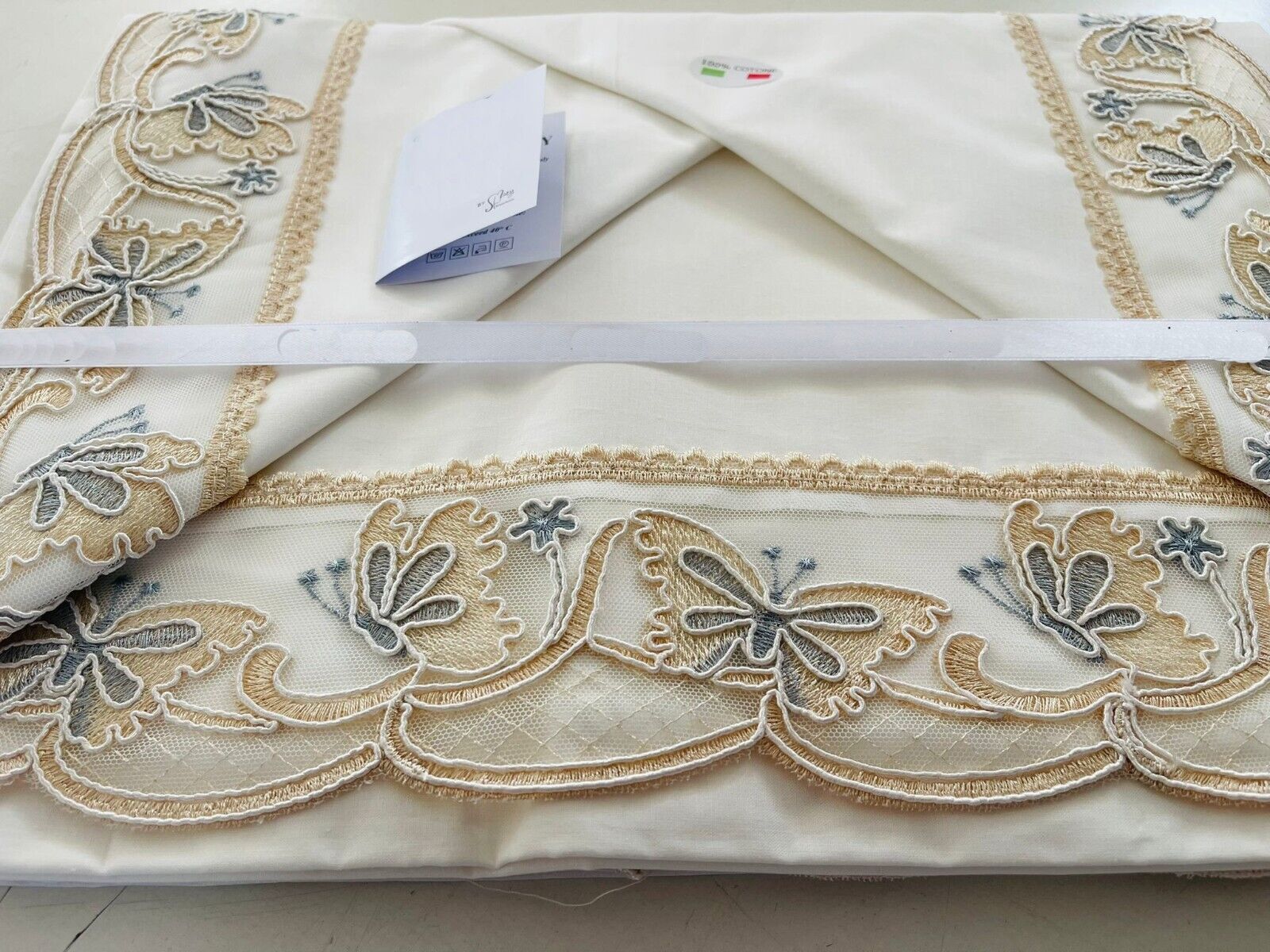 Completo lenzuola matrimoniale sopra, sotto e federe. Questo completo, in puro cotone, nasce dalla sapiente manifattura italiana, ove un indiscutibile qualità del prodotto si coniuga ad un'estetica mai banale. L'eleganza del prodotto ne è il risultato più evidente. Dai eleganza alla tua camera da letto. Disponibile nella misura del matrimoniale.
