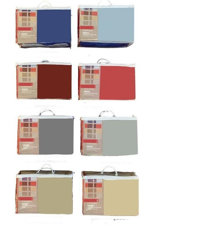 Il completo singolo è composto da un lenzuolo sopra cm 160 x 280cm, un lenzuolo sotto con angoli 100x200+25cm e una federe cm 50x80cm.