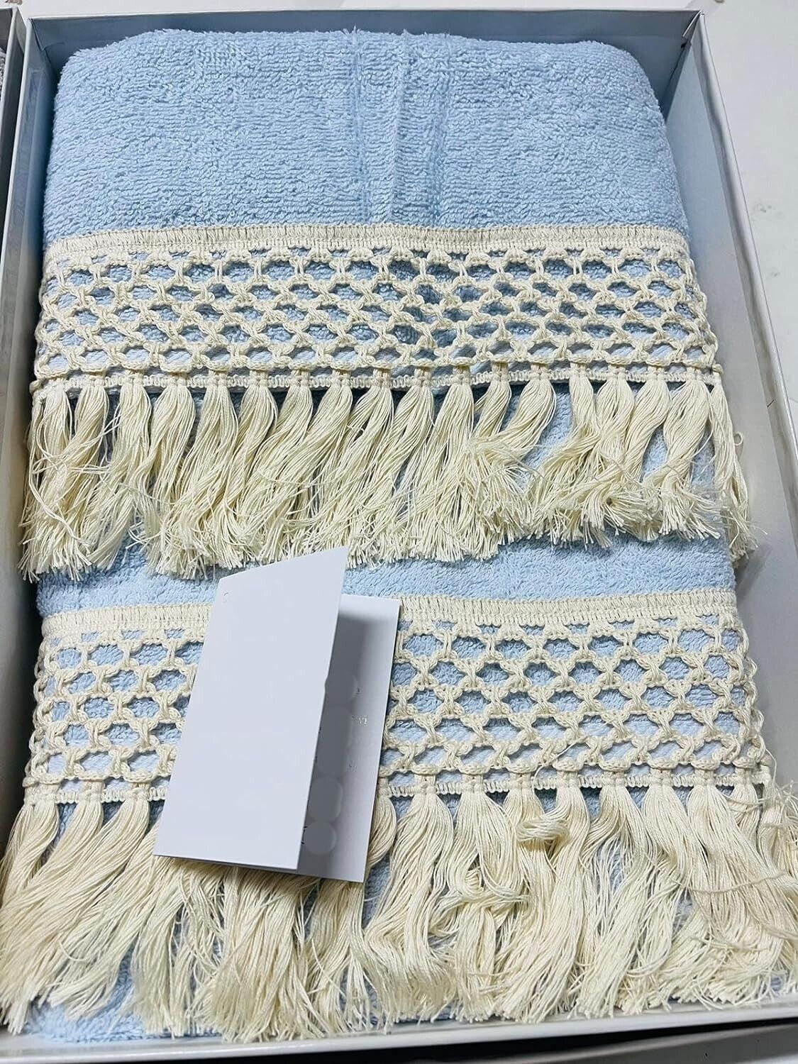presenta due asciugamani con differente misura: asciugamano viso 110x60cm,