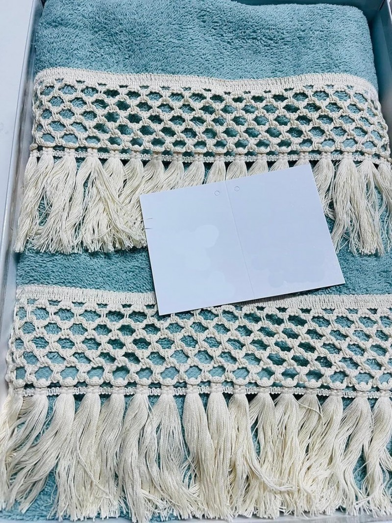 presenta due asciugamani con differente misura: asciugamano viso 110x60cm,