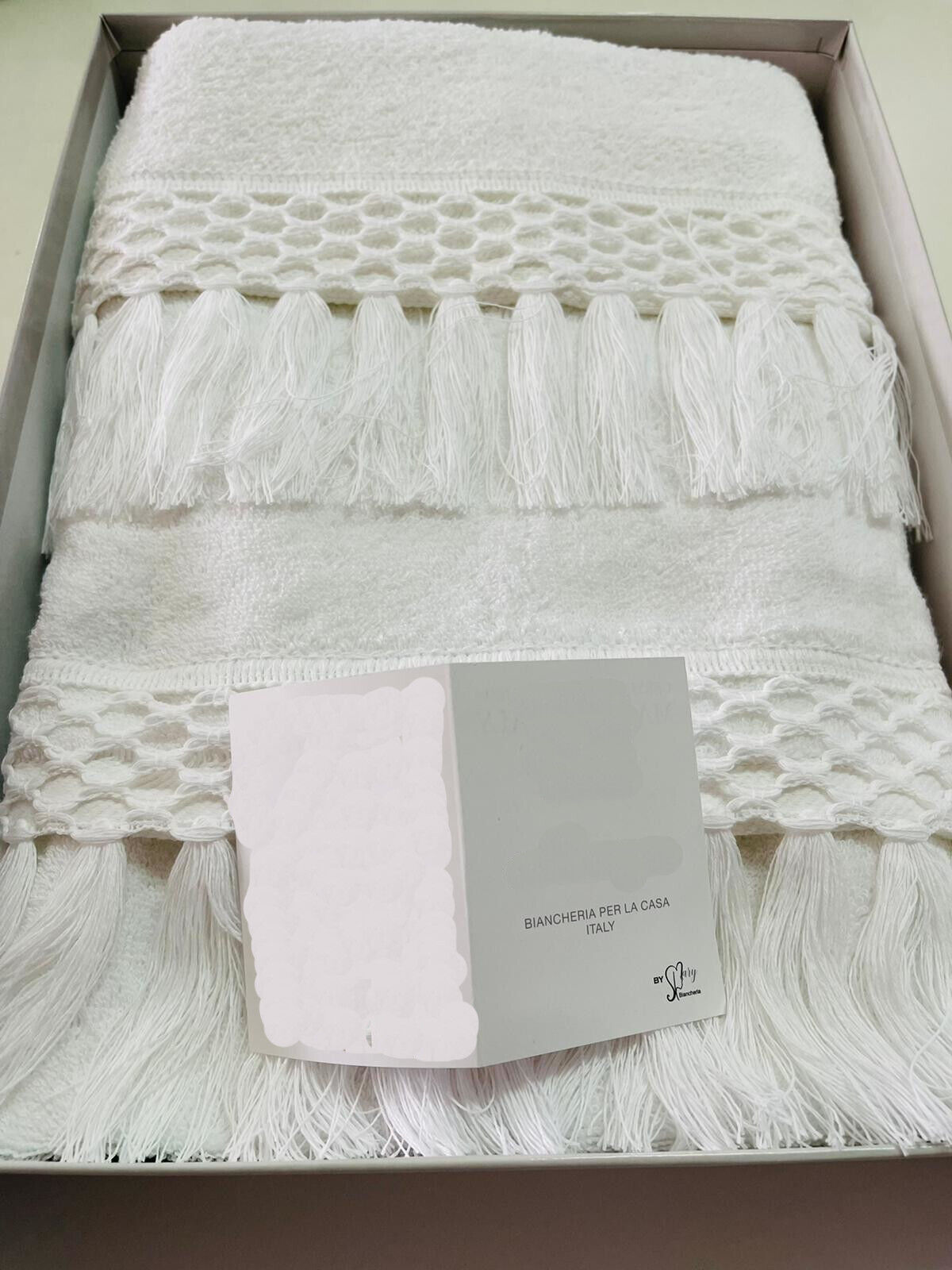 Set asciugamano 1+1 extra pesante. Misure asciugamano 60×105 ospite cm60×40. La coppia asciugamano è in puro cotone extra pesante. Disponibile in due colori Bianco e Panna. Questa coppia asciugamano è caratterizzato da una frangia annodata a mano che le conferisce maggiore eleganza dando quel tocco in più.