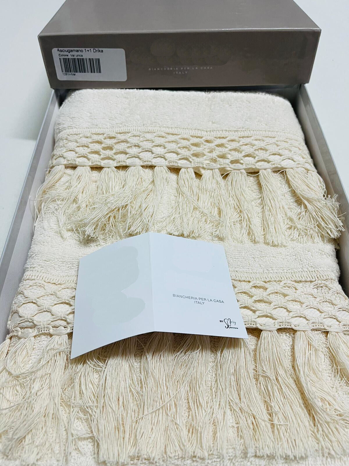 Set asciugamano 1+1 extra pesante. Misure asciugamano 60×105 ospite cm60×40. La coppia asciugamano è in puro cotone extra pesante. Disponibile in due colori Bianco e Panna. Questa coppia asciugamano è caratterizzato da una frangia annodata a mano che le conferisce maggiore eleganza dando quel tocco in più.