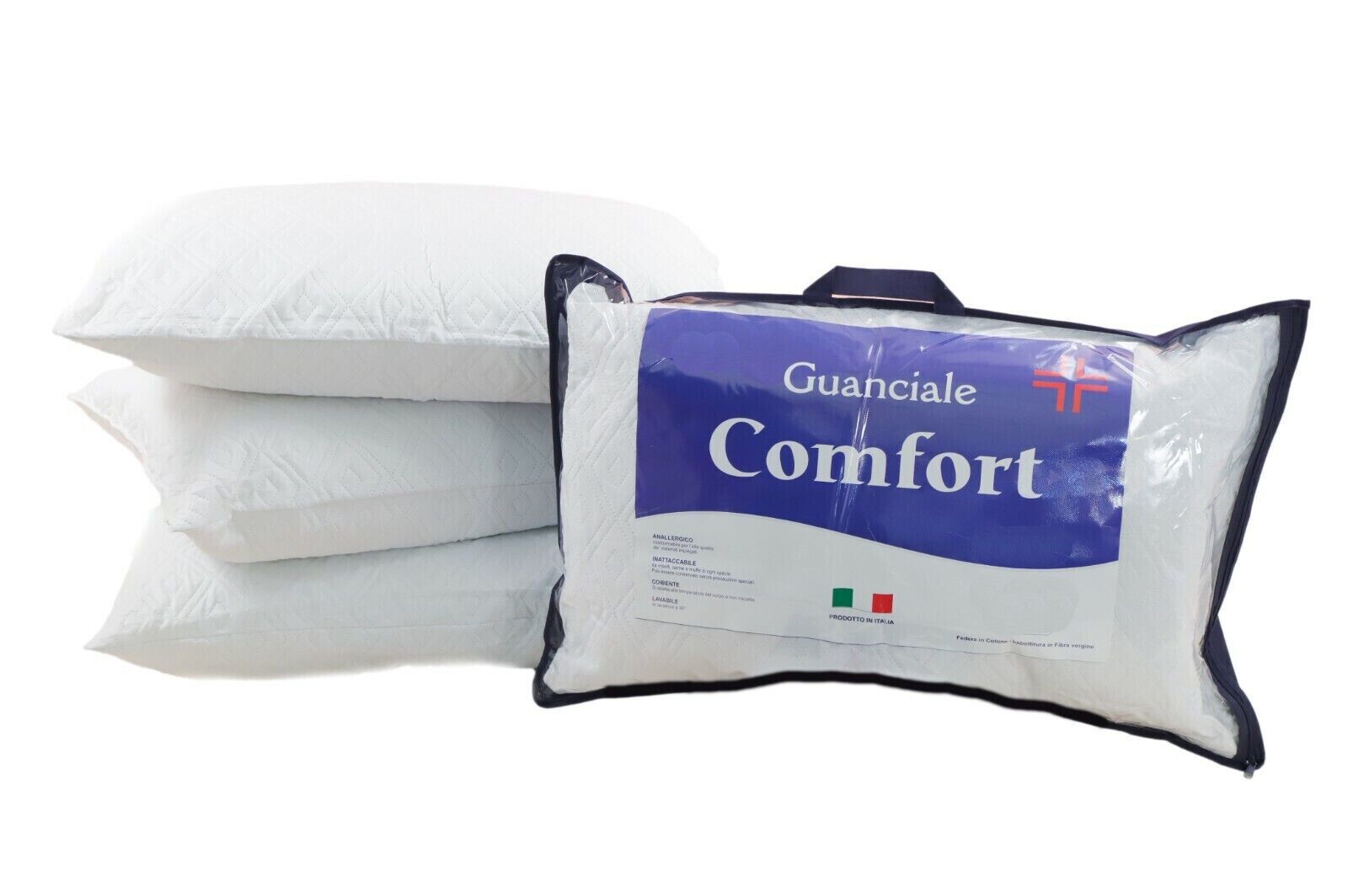 Guanciale IGIENICO ANTICARO ANALLERGICO TRASPIRANTE, MORBIDAMENTE IMBOTTITO NON CONTIENE FIBRE RIGENERATE che grazie alla sua struttura si modella alla testa ed al collo favorendo il rilassamento della muscolatura.