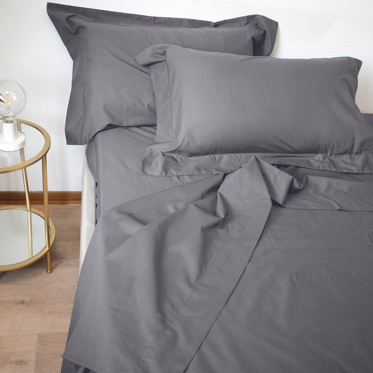 Misura Matrimoniale: lenzuolo sopra 250 x 290 cm lenzuolo sotto con angoli 180 x 200 + 25 cm federa 52 x 82. Disponibile in diverse varianti di colore