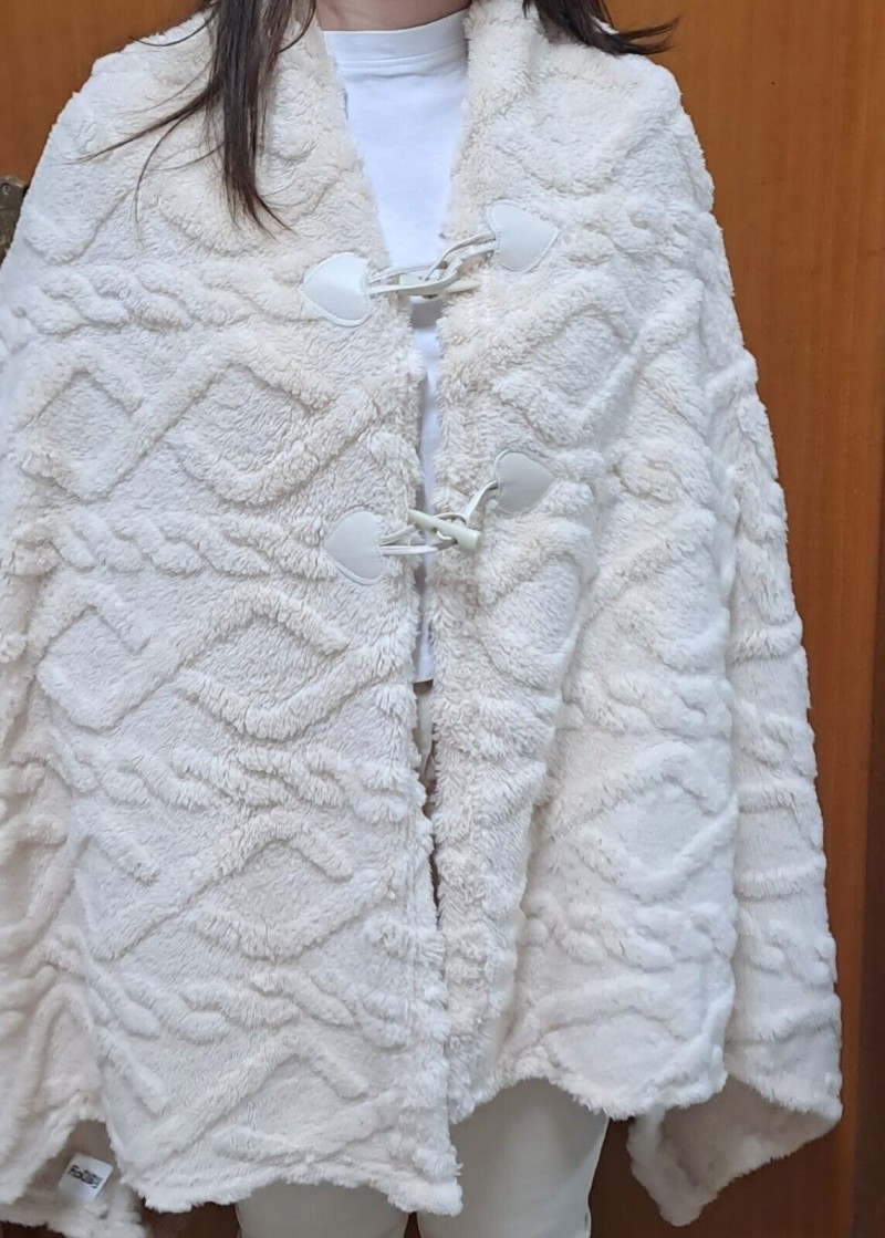 La mantella, disponibile in tre colori quali beige, grigio e rosa, è il coprispalla invernale ideale sia per le occasioni informali che per quelle più eleganti.