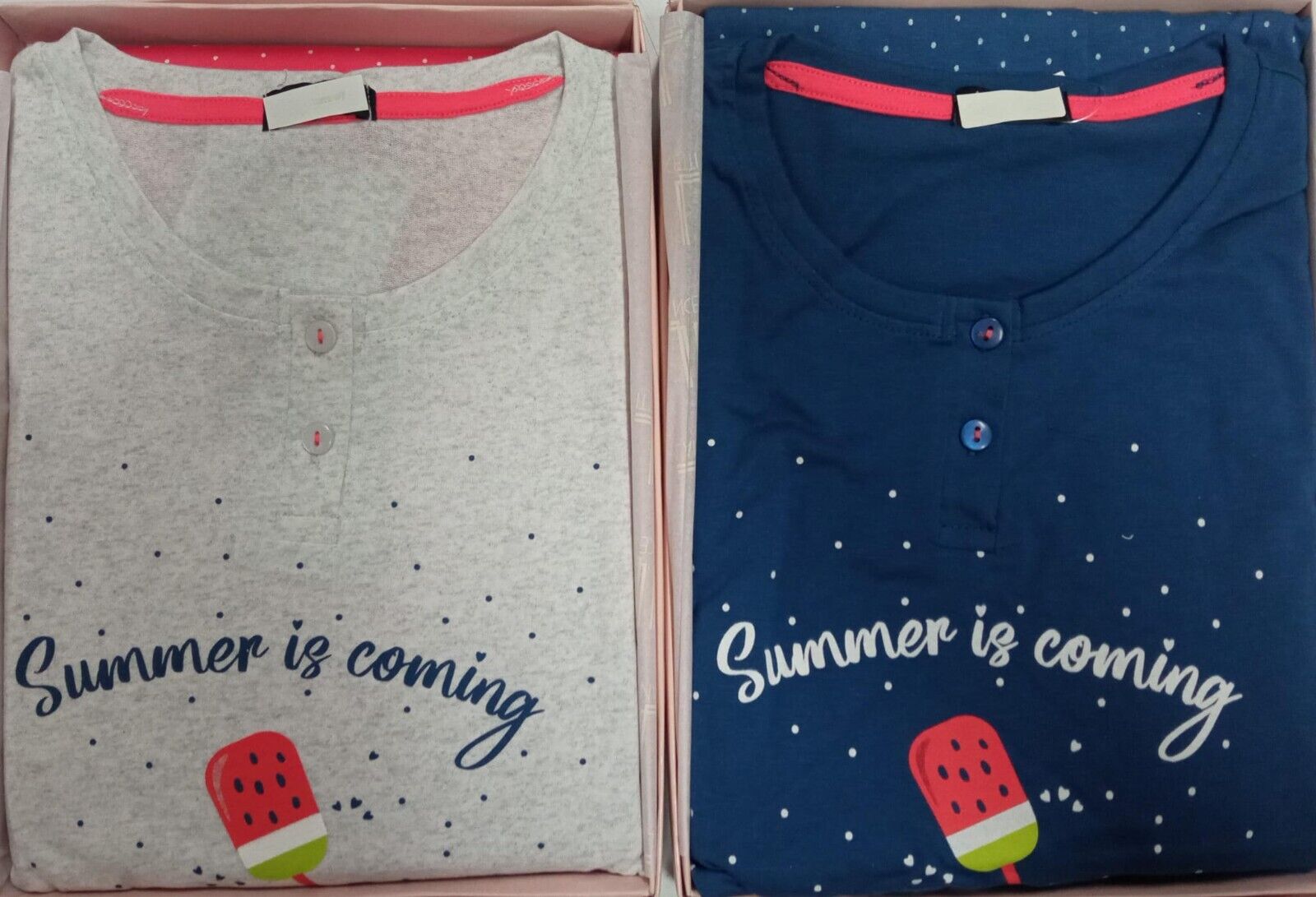 Pigiama da donna realizzato in fresco cotone per la stagione primavera estate.
