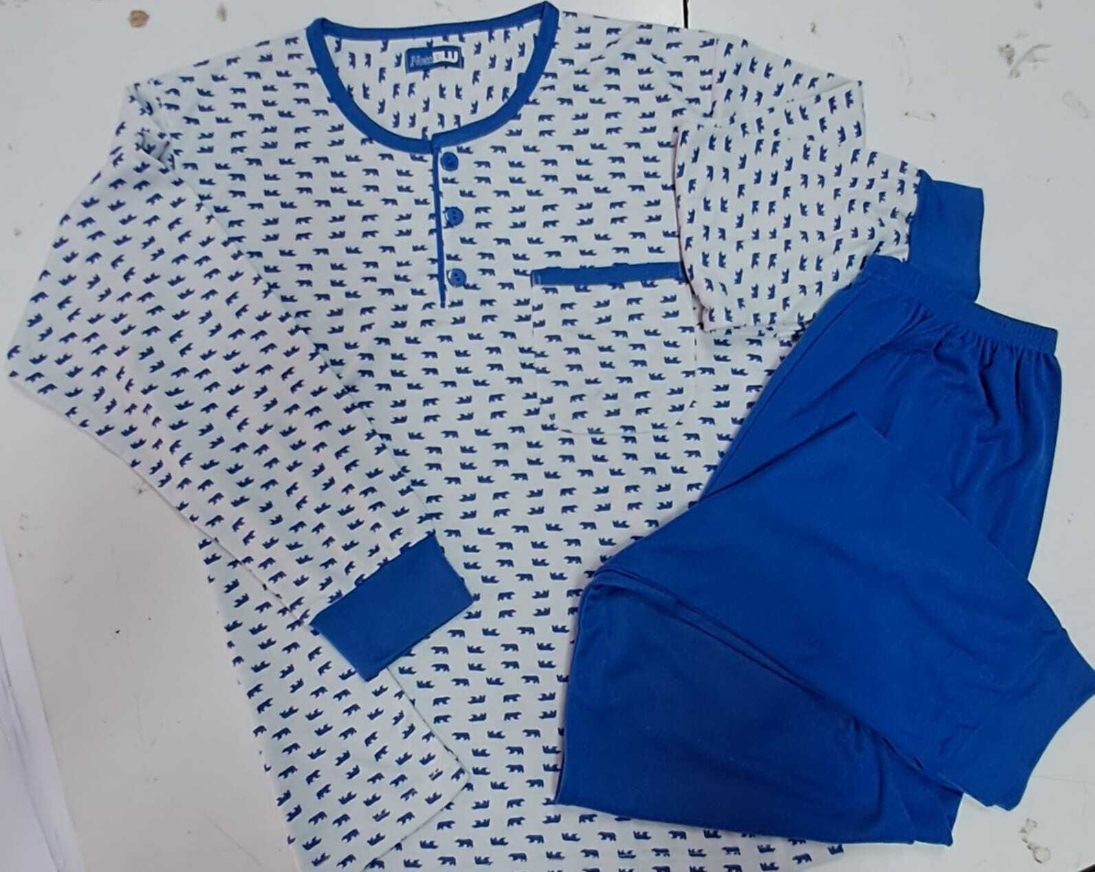Pigiama Uomo, 2 pezzi in cotone. Maglia manica lunga, pantalone lungo. Elasticizzato ai polsi caviglie e vita.