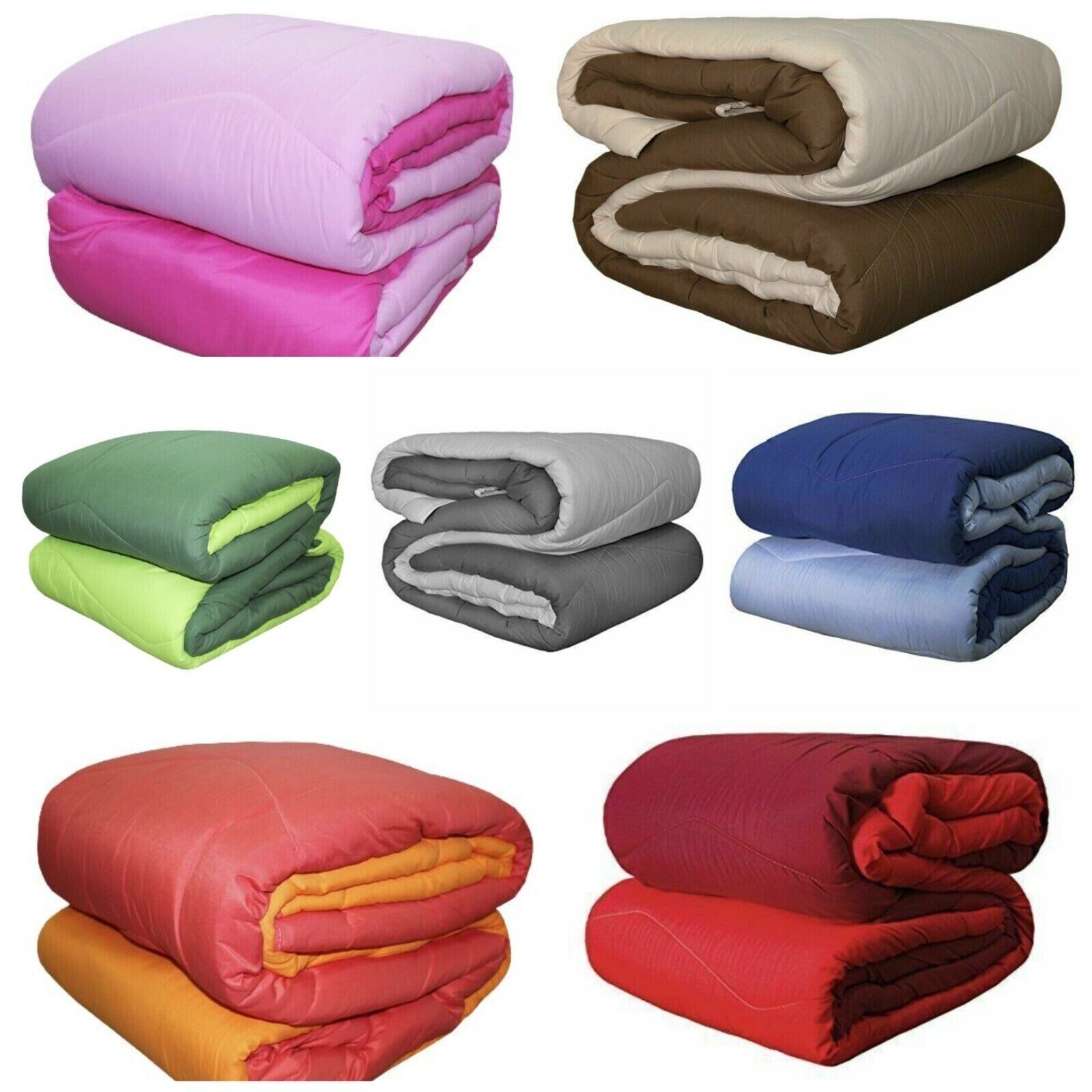 Trapunta piumone invernale, tinta unita, double face in vari colori disponibili quali verde chiaro/verde scuro, grigio chiaro/grigio scuro, blu/azzurro, bordeaux/rosso, beige/marrone, arancio/rosso, rosa/fuxia. I colori sono resistenti ai lavaggi.