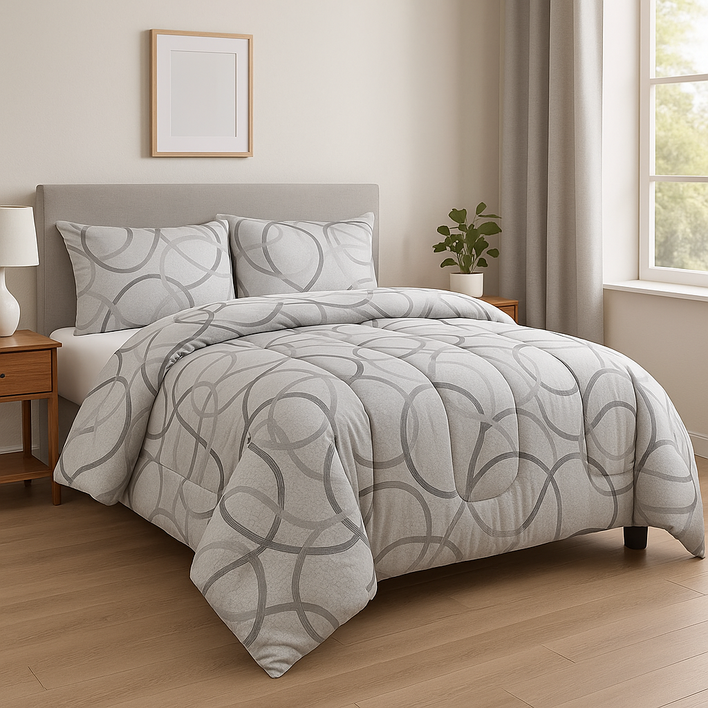 La tinta unita con fantasia geometrica dona un tocco raffinato e contemporaneo, perfetto per arredare con gusto ogni ambiente. L’imbottitura è in fibra anallergica in poliestere siliconato termoisolante, studiata per garantire calore costante, morbidezza e lunga durata. Con un peso di 450 gr/mq, è l’ideale per le fredde notti invernali, avvolgendoti in un comfort unico e soffice.