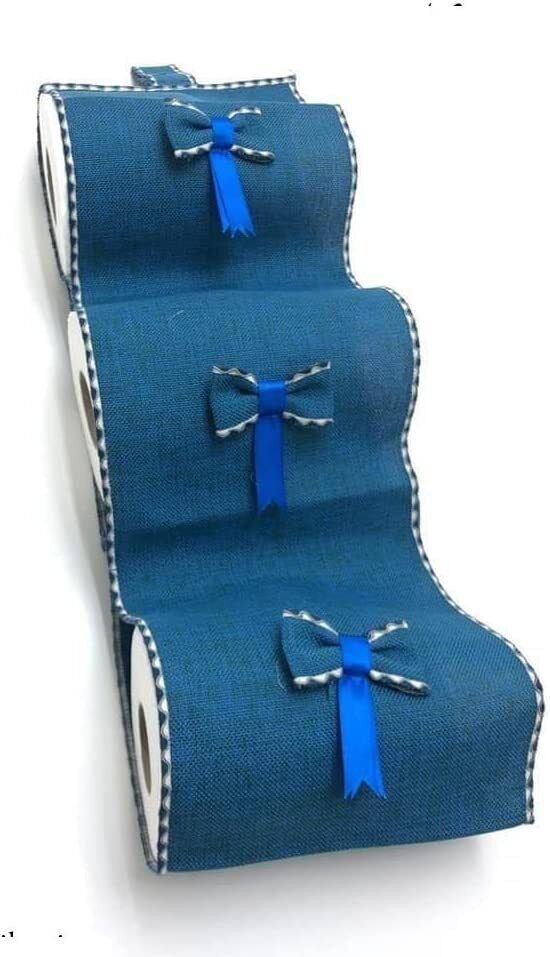 MADE IN ITALY Un gancio, realizzato con lo stesso tessuto permette di appendere il portarotolo a un semplice gancetto. Ospita comodamente 3 rotoli di carta igienica grandi. Da appendere vicino al water per avere sempre un rotolo di scorta a portata di mano