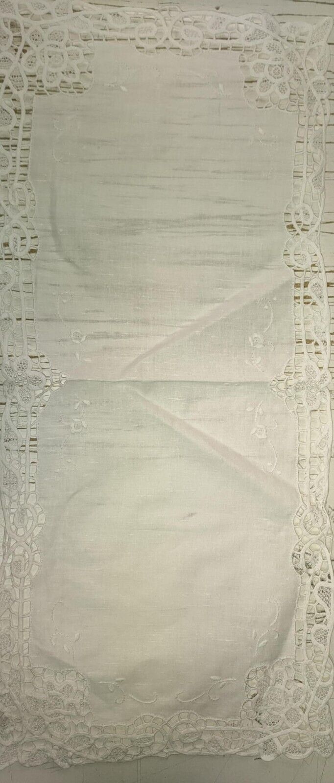Elegante Centrotavola, Striscia/ Runner da tavolo, misure 30x68, in lino bianco ricamato in Burano ti offre molteplici utilizzi nelle tue case e uffici, inclusi compiti di pulizia.