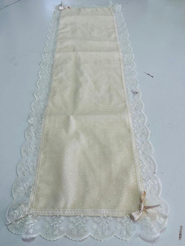 E' realizzato con tessuto di alta qualità e presenta un pizzo delicato lavorato in ogni dettaglio. Ideale per cucina, salone, salotti, tavoli e comodini. Con i suoi colori neutri è possibile abbinarlo a qualsiasi stanza ed arredamento della vostra casa.