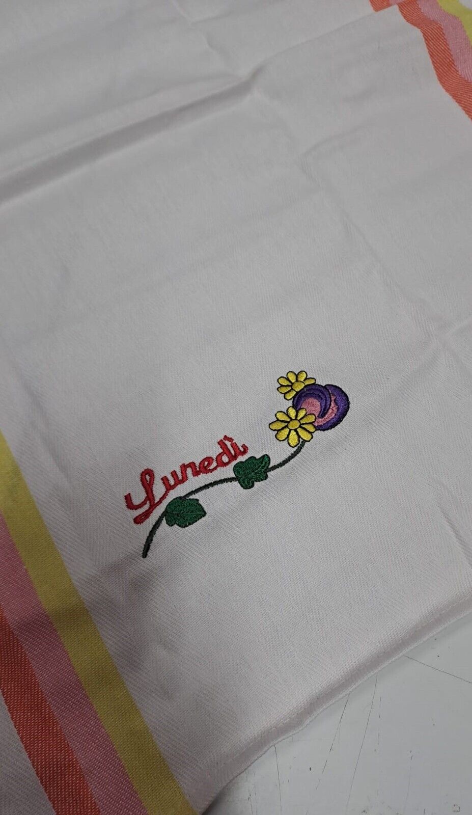 ? SET COMPLETO CON GIORNI DELLA SETTIMANA RICAMATI: Questo elegante set di 7 strofinacci presenta un ricamo distintivo per ogni giorno della settimana. Questo design unico non solo arricchisce l'aspetto della tua cucina con un tocco decorativo, ma facilita anche l'organizzazione quotidiana, permettendoti di utilizzare uno strofinaccio diverso ogni giorno per una maggiore praticità e igiene.