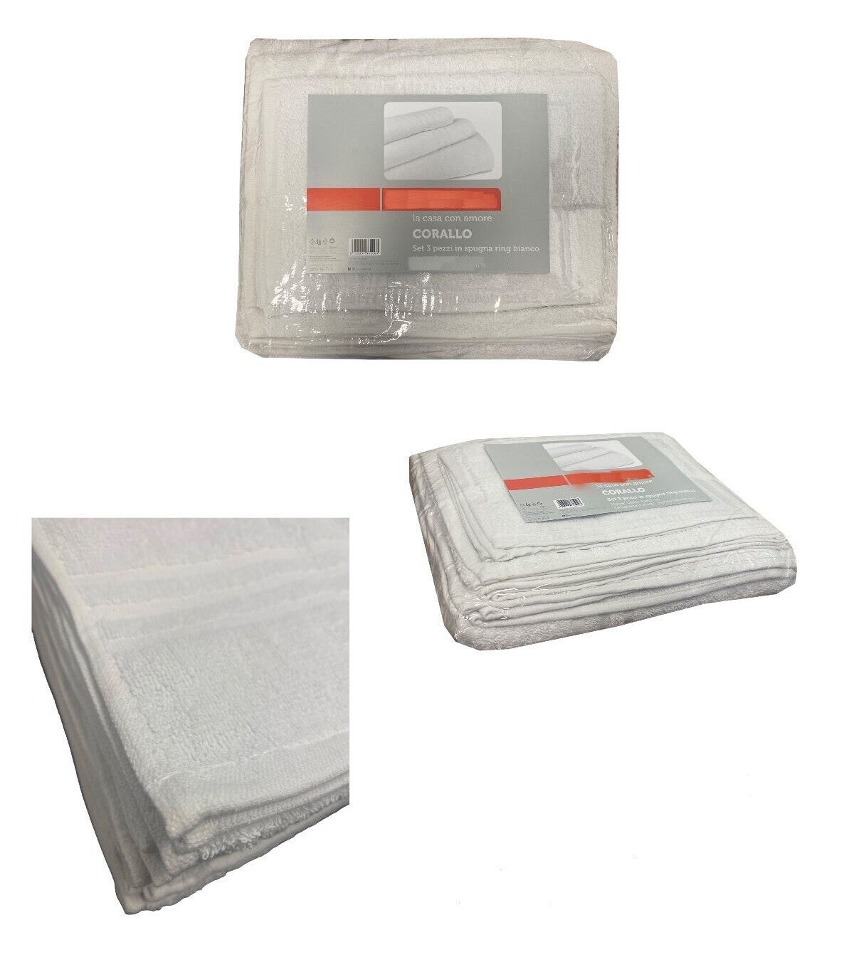 Questo set 3 pezzi è composto da 1 asciugamano viso, 1 asciugamano ospite e 1 telo bagno realizzati in spugna cotone idrofilo.