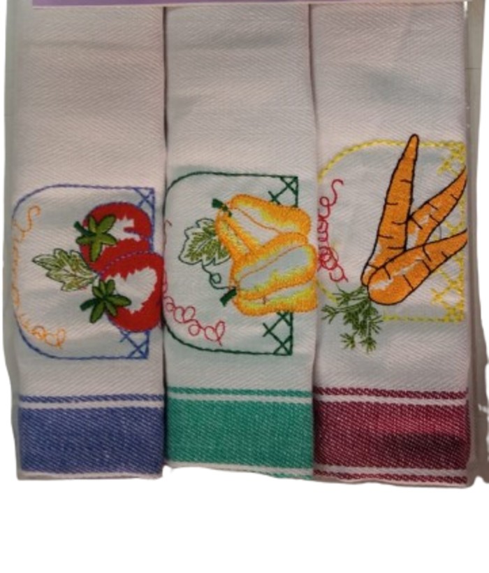 Strofinacci Set 3pezzi Cucina Spigati Ricamati Cotone 50x70cm Made in Itay