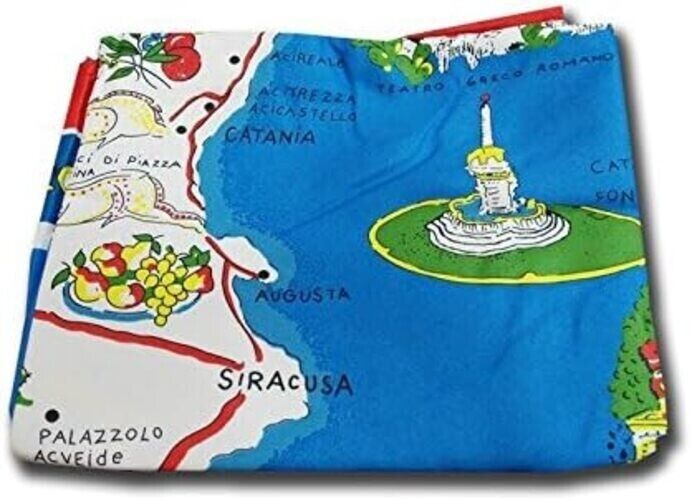 Telo da mare Sicilia in microfibra stampato da un lato. Il telo, misura cm 90 x 160, dove viene riprodotta la Sicilia stampata in grande con i più importanti monumenti e simboli della Sicilia....