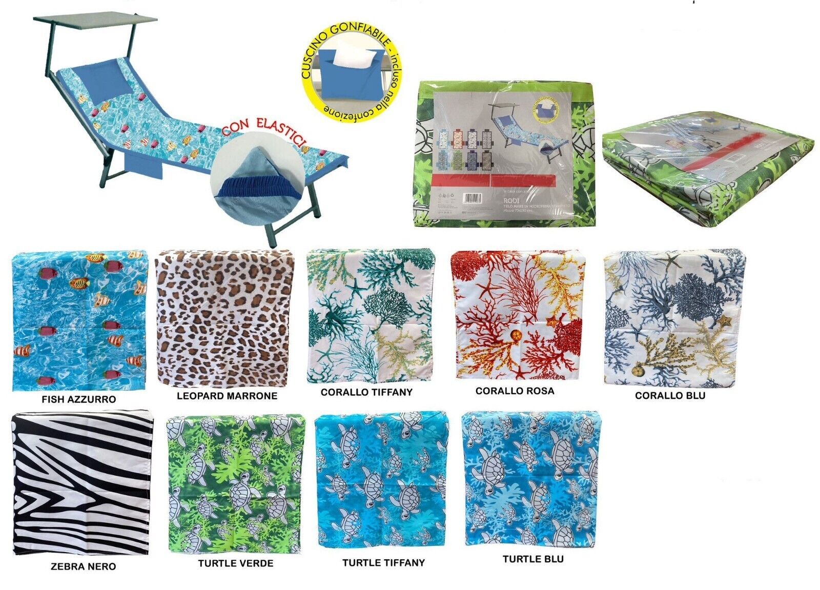 Telo mare Microfibra Stampato Varie Fantasie Lettino 70x190cm cuscino omaggio
