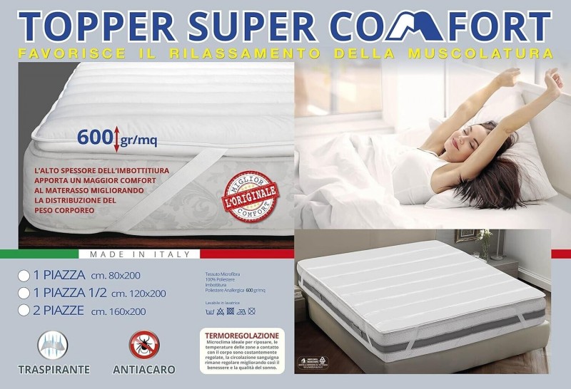 Questo Topper, con elastici ai quattro angoli, trapuntato costituisce un rivestimento ideale per il tuo materasso. Presenta una trama a rombi. Conferisce maggiore morbidezza al tuo letto rendendolo comodo e confortevole.
