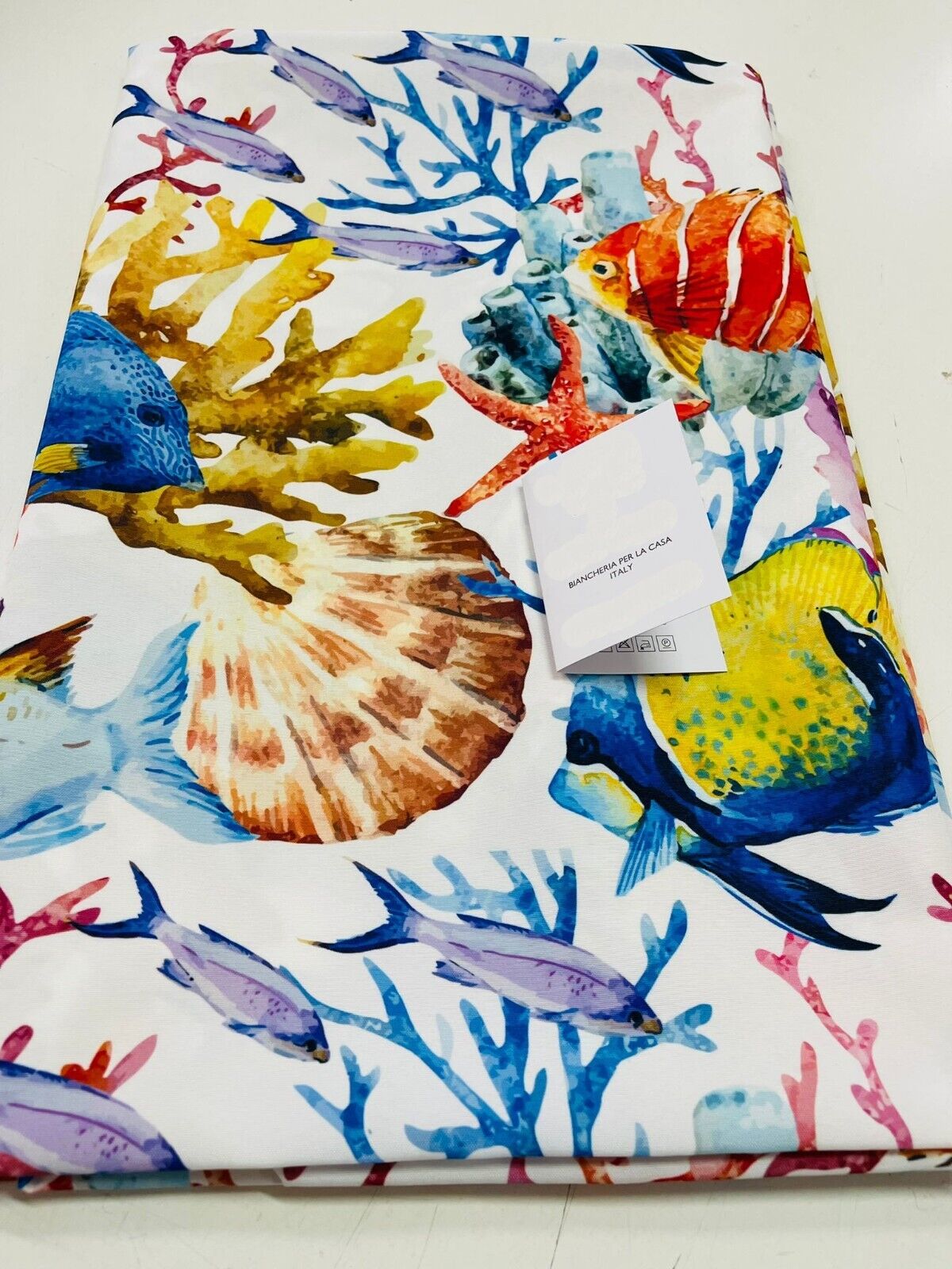 Tovaglia, da tavola x12 persone misura 140x240cm, in morbido tessuto cotone twill realizzato con stampa digitale in alta definizione a tema acquatico in 3 diverse fantasie. Qualità extra. La tovaglia è interamente prodotta, realizzata e lavorata artigianalmente in Italia. Presenta una qualità alta e dona un tocco di eleganza e ricercatezza al tuo ambiente. Ideale per la stagione estiva per dare un tocco di colore alla tua tavola.