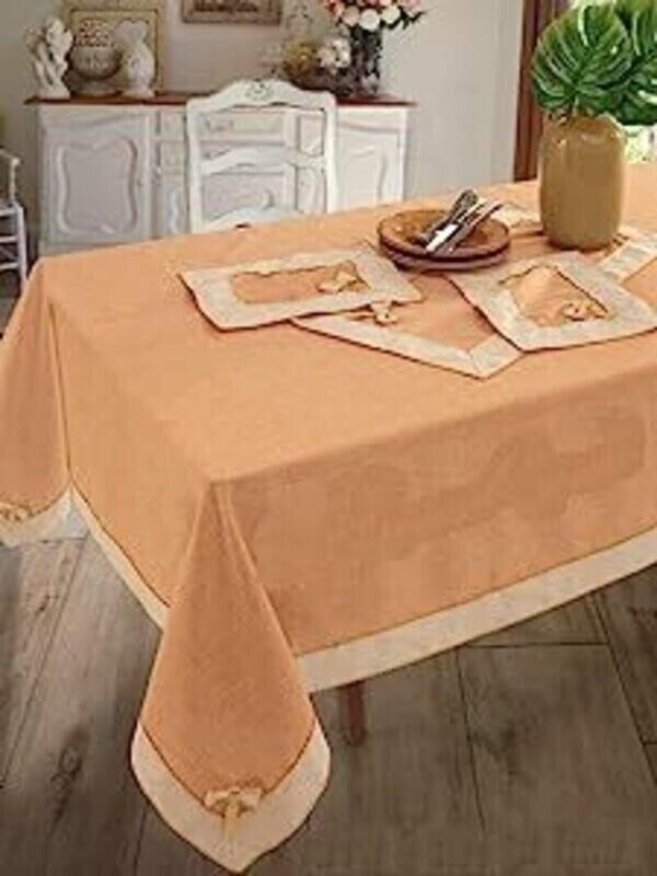 Tovaglia da tavola x12 persone, misura 140x240cm, in tessuto juta con disegno piazzato. La tovaglia è interamente prodotta, realizzata e lavorata artigianalmente in Italia. Presenta una qualità alta e dona un tocco di eleganza e ricercatezza al tuo ambiente. Grazie alla particolare tessitura obliqua, il twill presenta una trama robusta ed è capace di mantenere più a lungo la stiratura, essendo quindi meno soggetto alle pieghe. Lavabile in lavatrice. Made in Italy.