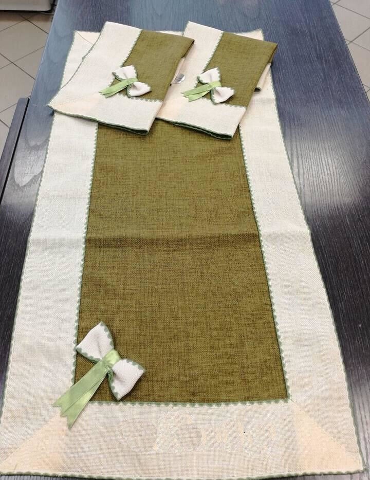 Elegante tre pezzi di centrini in tessuto Juta rifinito con smerlino. Il tris è composto da un centro grande 40x70cm e due centrini più piccoli 30x40cm. Realizzati con materiale di alta qualità. Disponibili in vari colori quali: arancio, bordeaux, blu, corallo, beige, grigio, marrone, nero, panna, panna/marrone, rosso/panna, rosso/rosso e verde.