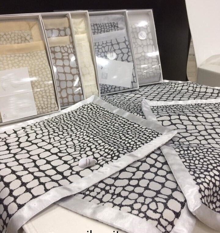Elegante e ricercato tris di centrini composto da un centro grande 40x70cm e due centrini più piccoli 30x40cm. Il tris di centrini è in raso a fantasia. Disponibili in vari colori quali: biscotto, gianduia, grigio chiaro, grigio scuro, grigio perla e panna.