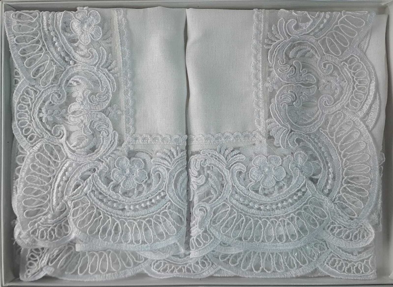 Esclusivi centrini, lavorazione artigianale produzione interamente italiana, in tinta unita con bordo fantasia si abbinano sia ad un arredamento classico che moderno. Il set di centrini è perfetto in camera da letto ma anche sui mobili, su una consolle o su un tavolo da salone. Diverse lunghezze da adattare in qualsiasi arredamento dal tavolo da pranzo al tavolo da salotto, dalla camera da letto al salone. Ideali per qualsiasi tipo di arredamento.