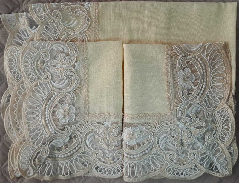 Esclusivi centrini, lavorazione artigianale produzione interamente italiana, in tinta unita con bordo fantasia si abbinano sia ad un arredamento classico che moderno. Il set di centrini è perfetto in camera da letto ma anche sui mobili, su una consolle o su un tavolo da salone. Diverse lunghezze da adattare in qualsiasi arredamento dal tavolo da pranzo al tavolo da salotto, dalla camera da letto al salone. Ideali per qualsiasi tipo di arredamento.