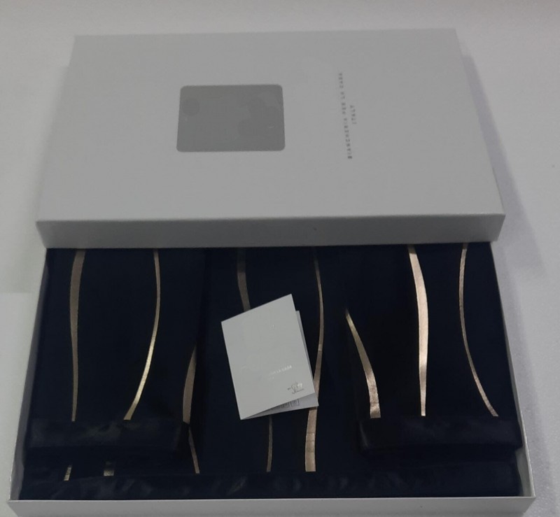 Esclusivi centrini, lavorazione artigianale produzione interamente italiana, in tinta unita con tratteggi oro. Si abbinano sia ad un arredamento classico che moderno. Il set di centrini è perfetto in camera da letto ma anche sui mobili, su una consolle o su un tavolo da salone. Diverse lunghezze da adattare in qualsiasi arredamento dal tavolo da pranzo al tavolo da salotto, dalla camera da letto al salone. Ideali per qualsiasi tipo di arredamento.
