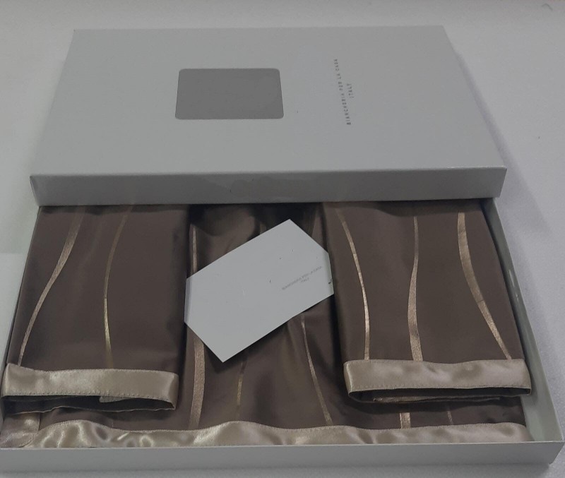 Esclusivi centrini, lavorazione artigianale produzione interamente italiana, in tinta unita con tratteggi oro. Si abbinano sia ad un arredamento classico che moderno. Il set di centrini è perfetto in camera da letto ma anche sui mobili, su una consolle o su un tavolo da salone. Diverse lunghezze da adattare in qualsiasi arredamento dal tavolo da pranzo al tavolo da salotto, dalla camera da letto al salone. Ideali per qualsiasi tipo di arredamento.