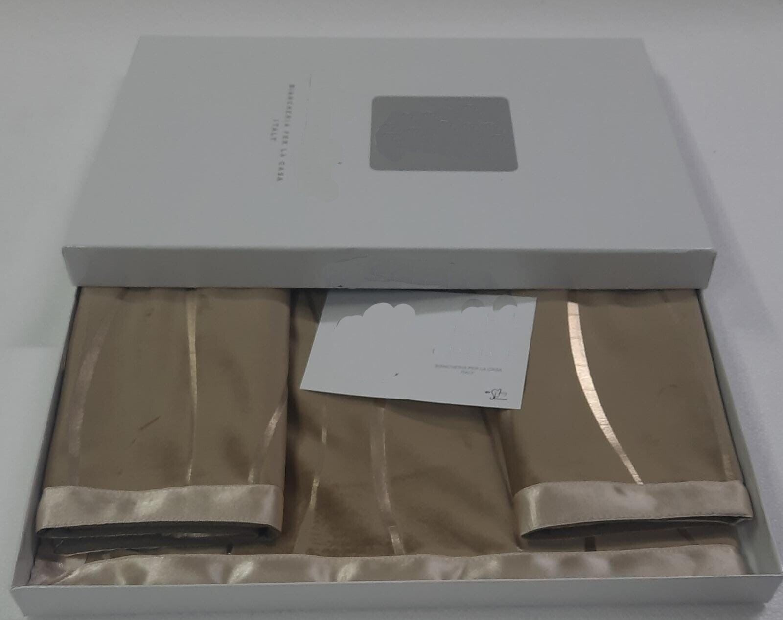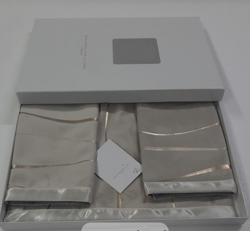 Elegante e ricercato tris di centrini composto da un centro grande 40x70cm e due centrini più piccoli 30x40cm. Realizzati con materiale di alta qualità. Disponibili in vari colori quali: beige, biscotto, bordeaux, grigio, nero, tortora.